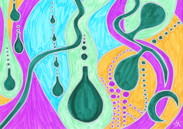 Bis ich 2016 im Rahmen einer Weiterbildung in meinen Schreibunterlagen zum "Krizzeln" anfing. Ich stehe erst am Anfang im Ausbreiten meines Talentes für Farben und Formen und bin selbst neugierig, wohin es mich noch führt.